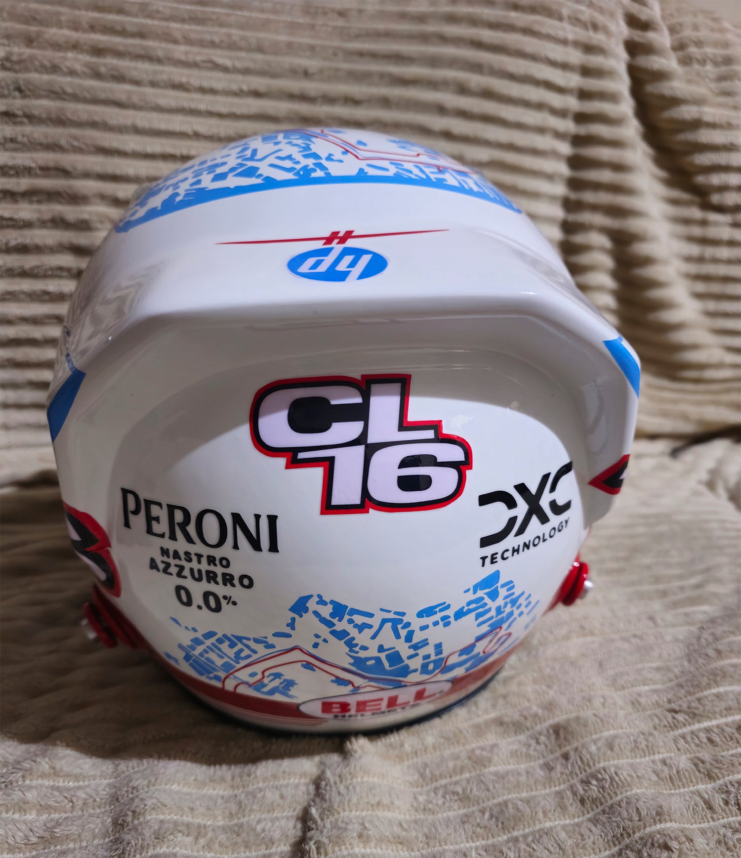 Todas las pequeñas formas aerodinámicas, calcomanías y colores se han replicado a la perfección en este casco.